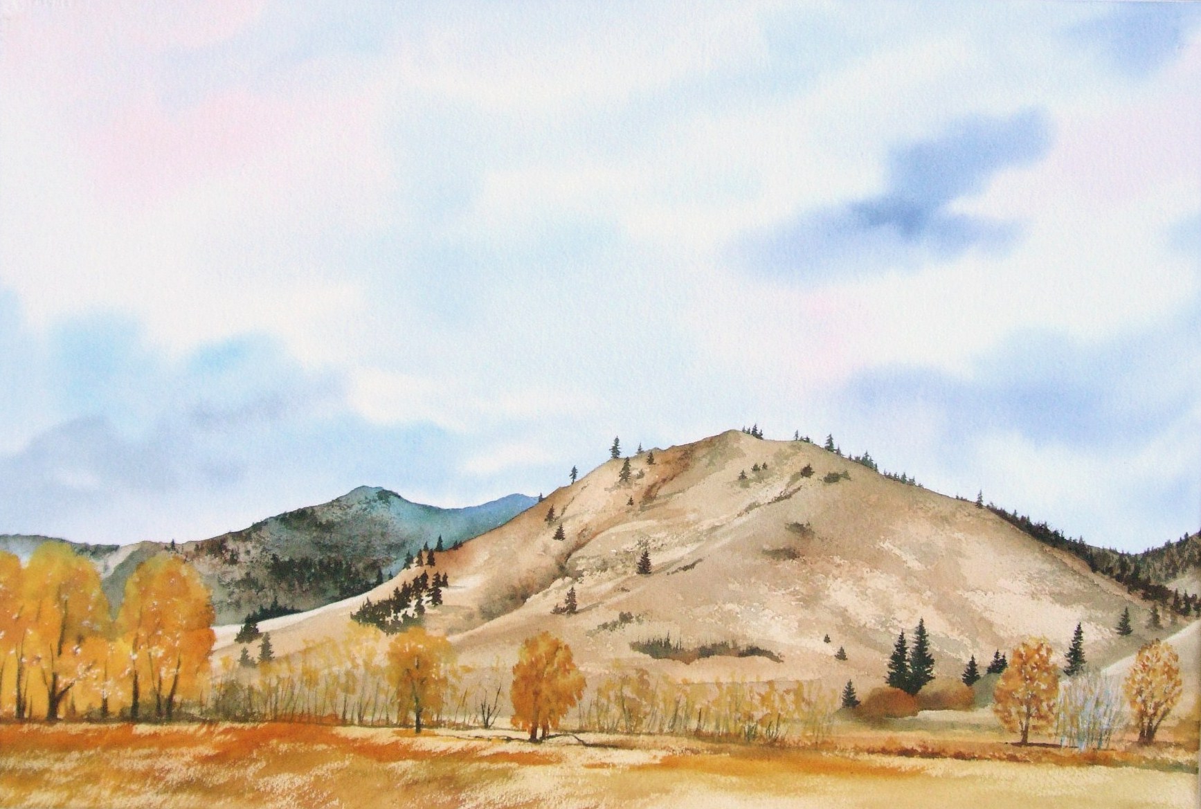 - Autumn Hills, Original Watercolour Painting, 55cm x 36cm