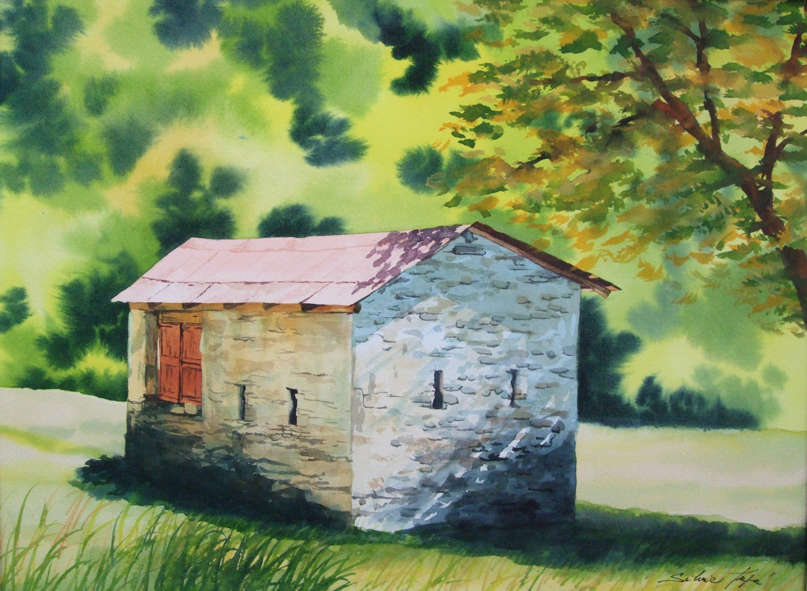 - ***SOLD***Slovenian Barn, Original Watercolour Painting *** SOLD ***
