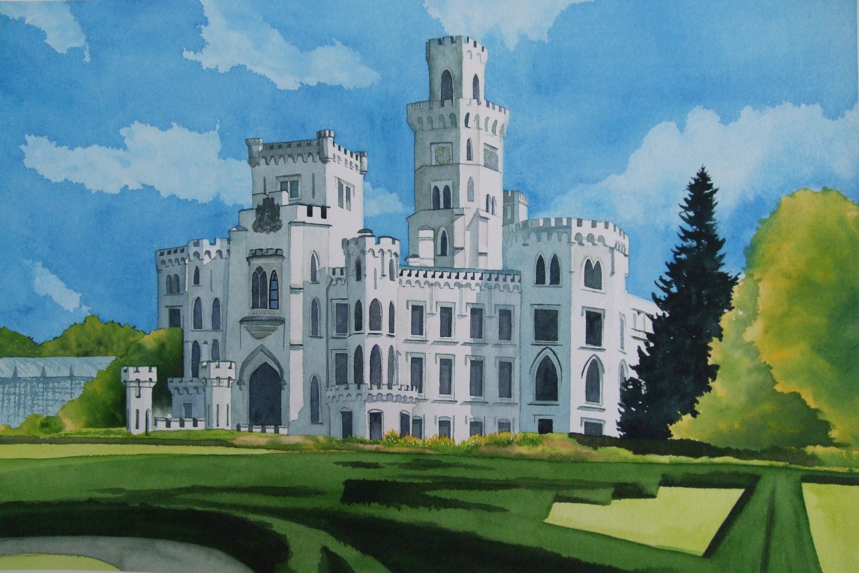 - Castle Hluboka Nad Vltavou, Original Watercolour Painting, 55cm x 37cm