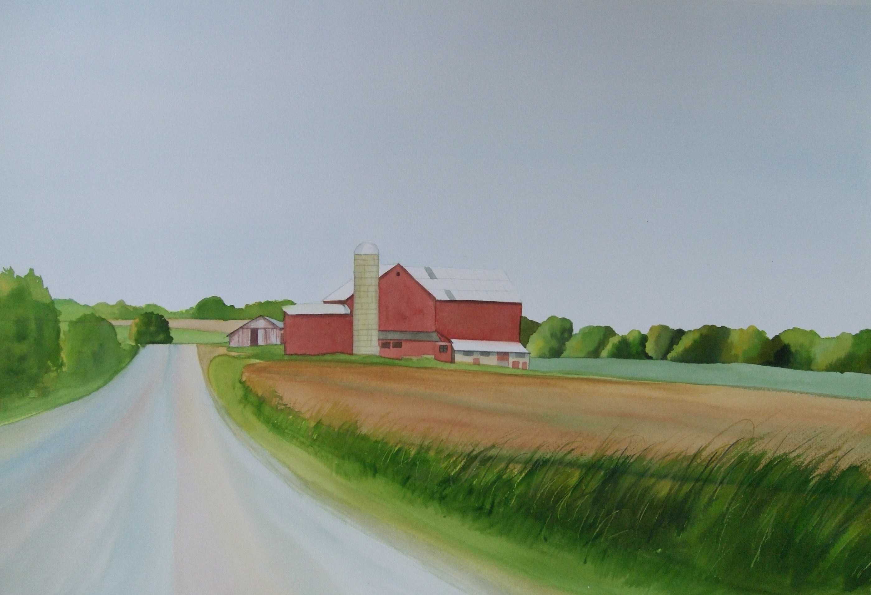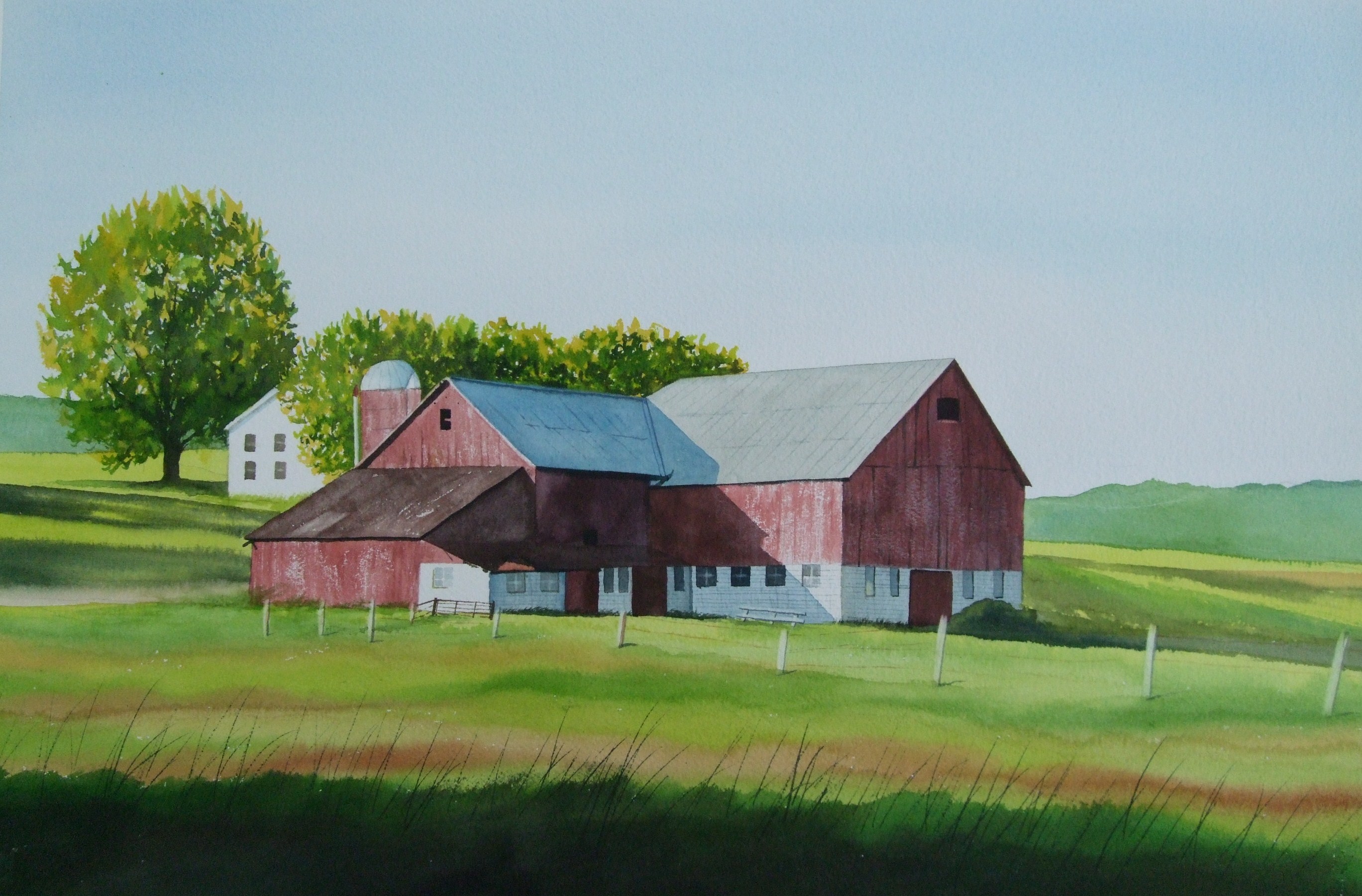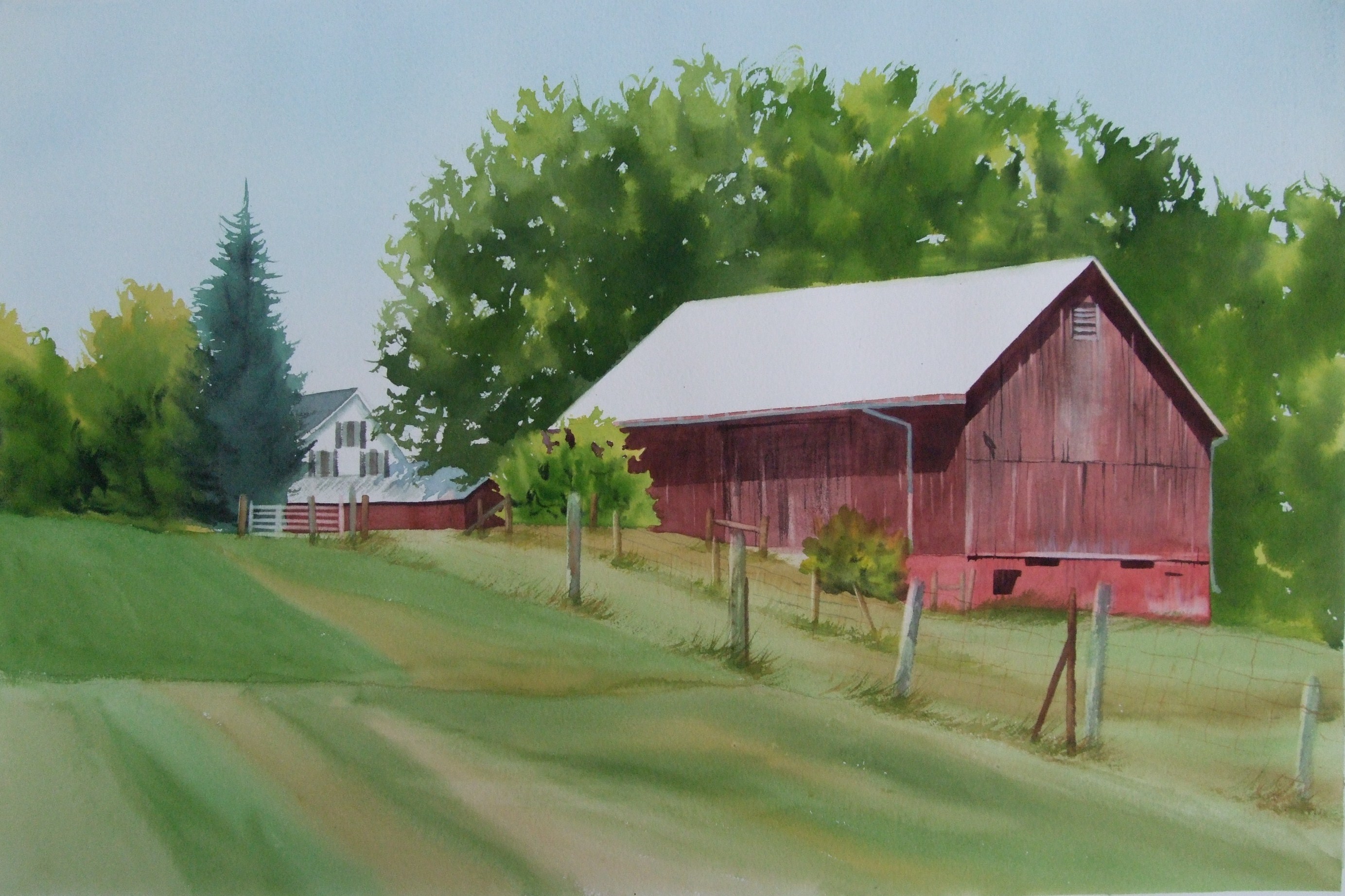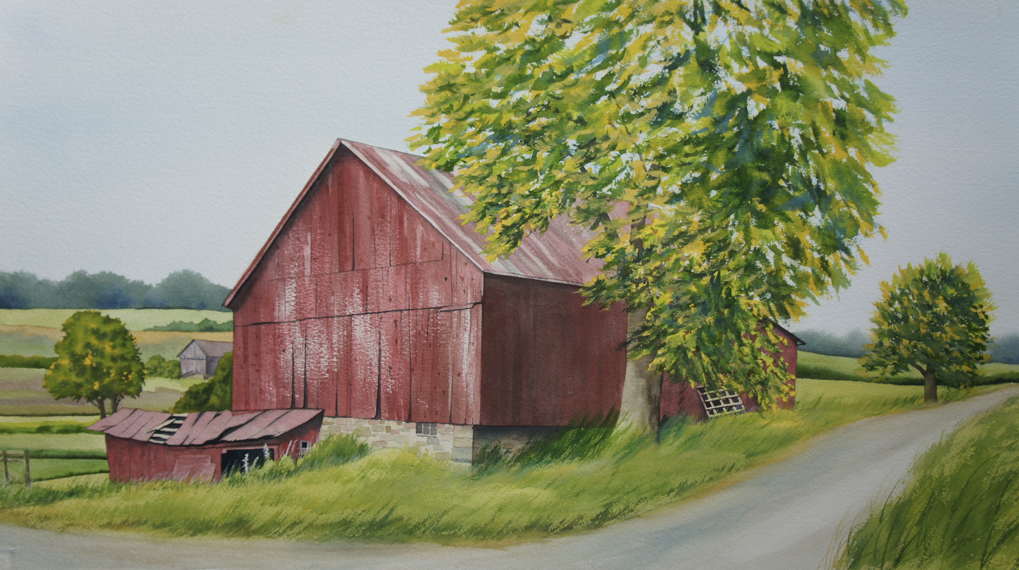 - Ohio Barn, Original Watercolour Painting, 55cm x 34cm