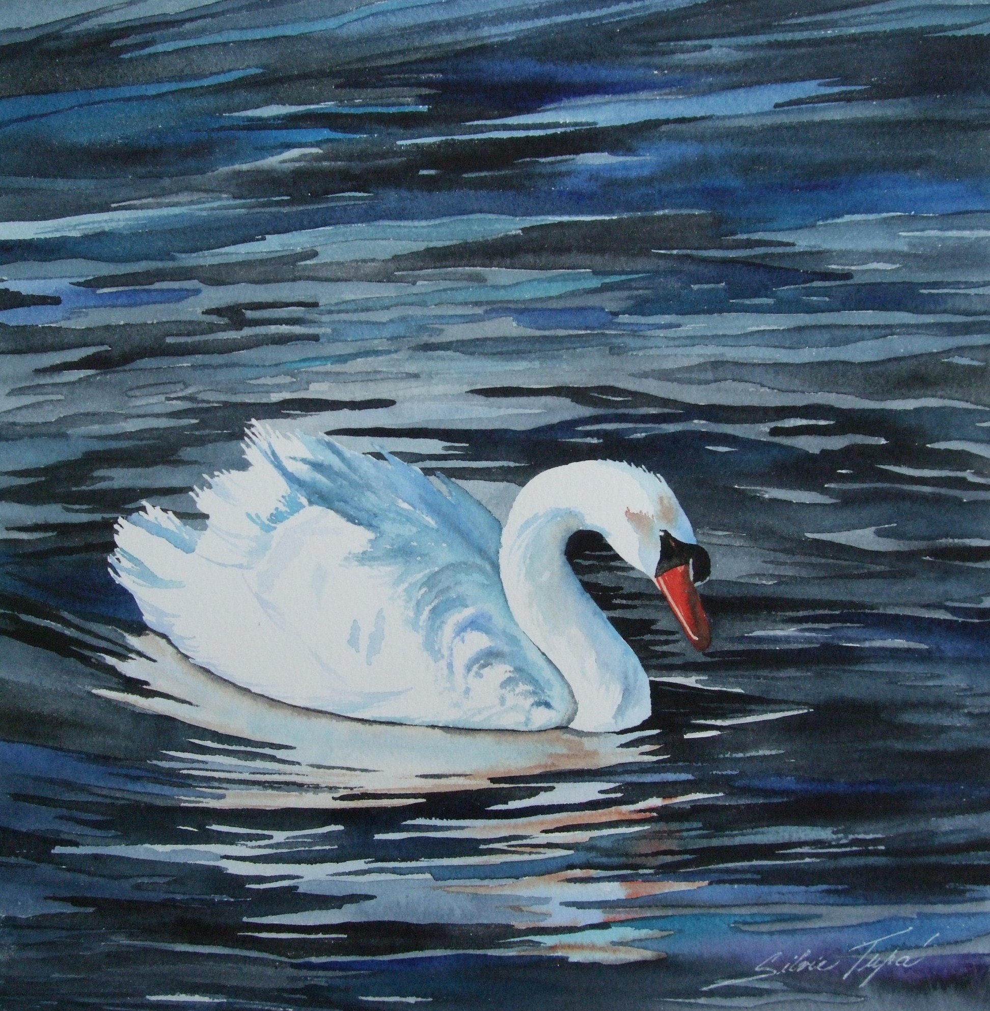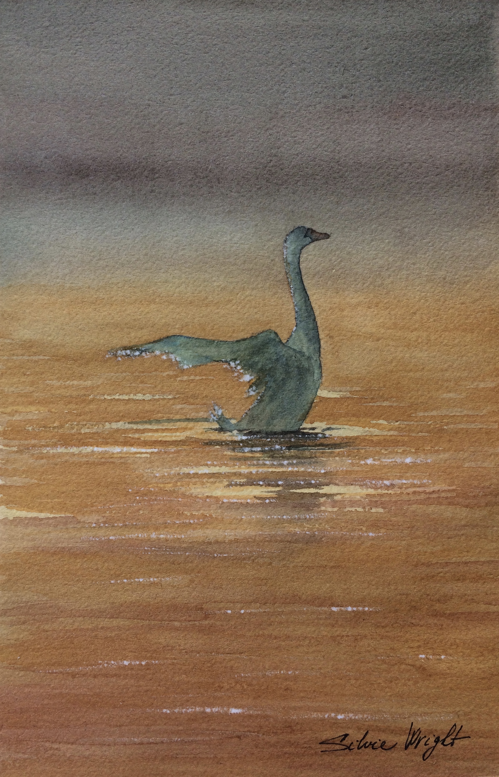 - Swan Reflection, Original Watercolour Painting, 30cm x 30cm