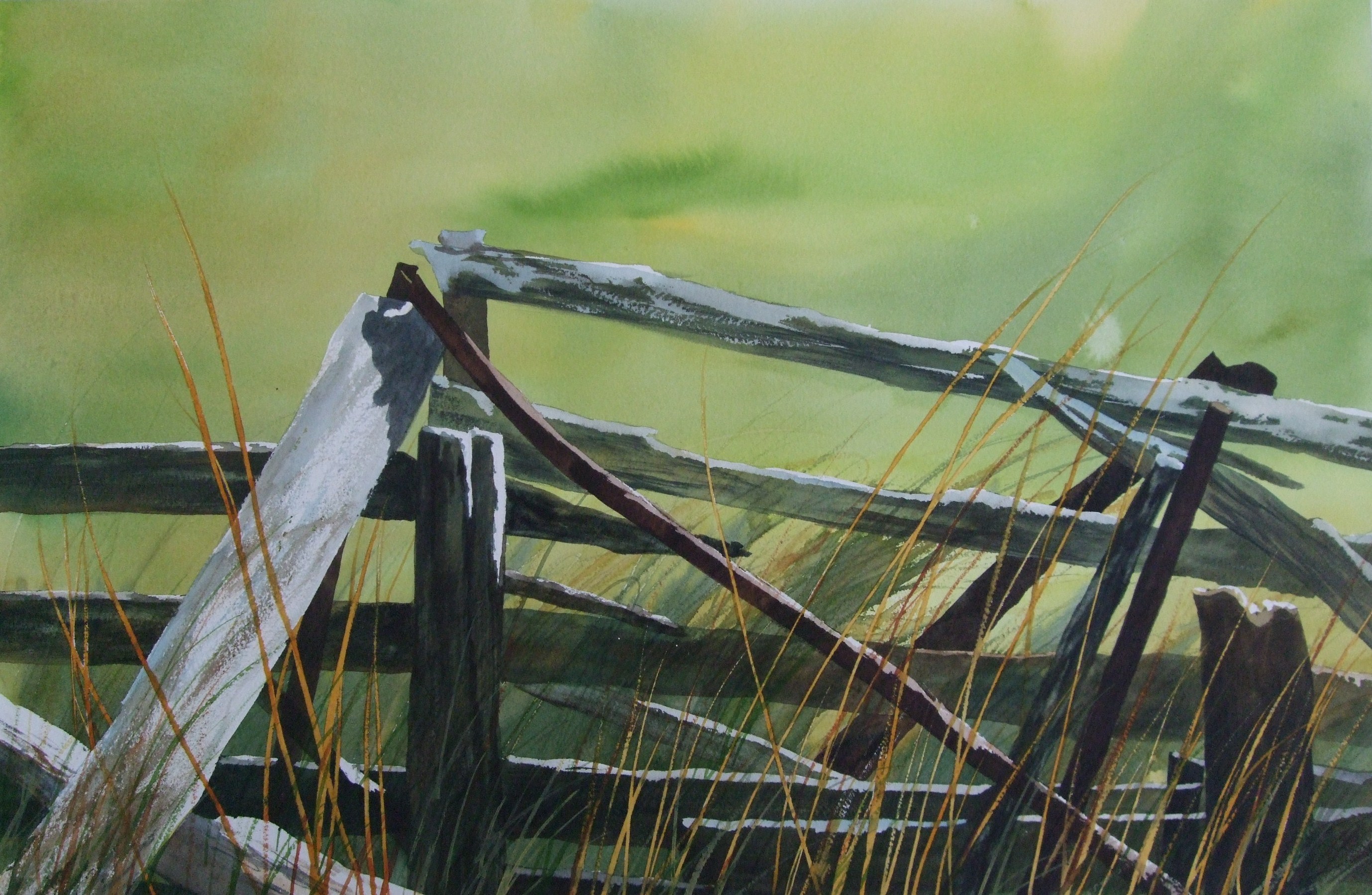 - Old Fence, Original Watercolour Painting, 53cm x 35cm