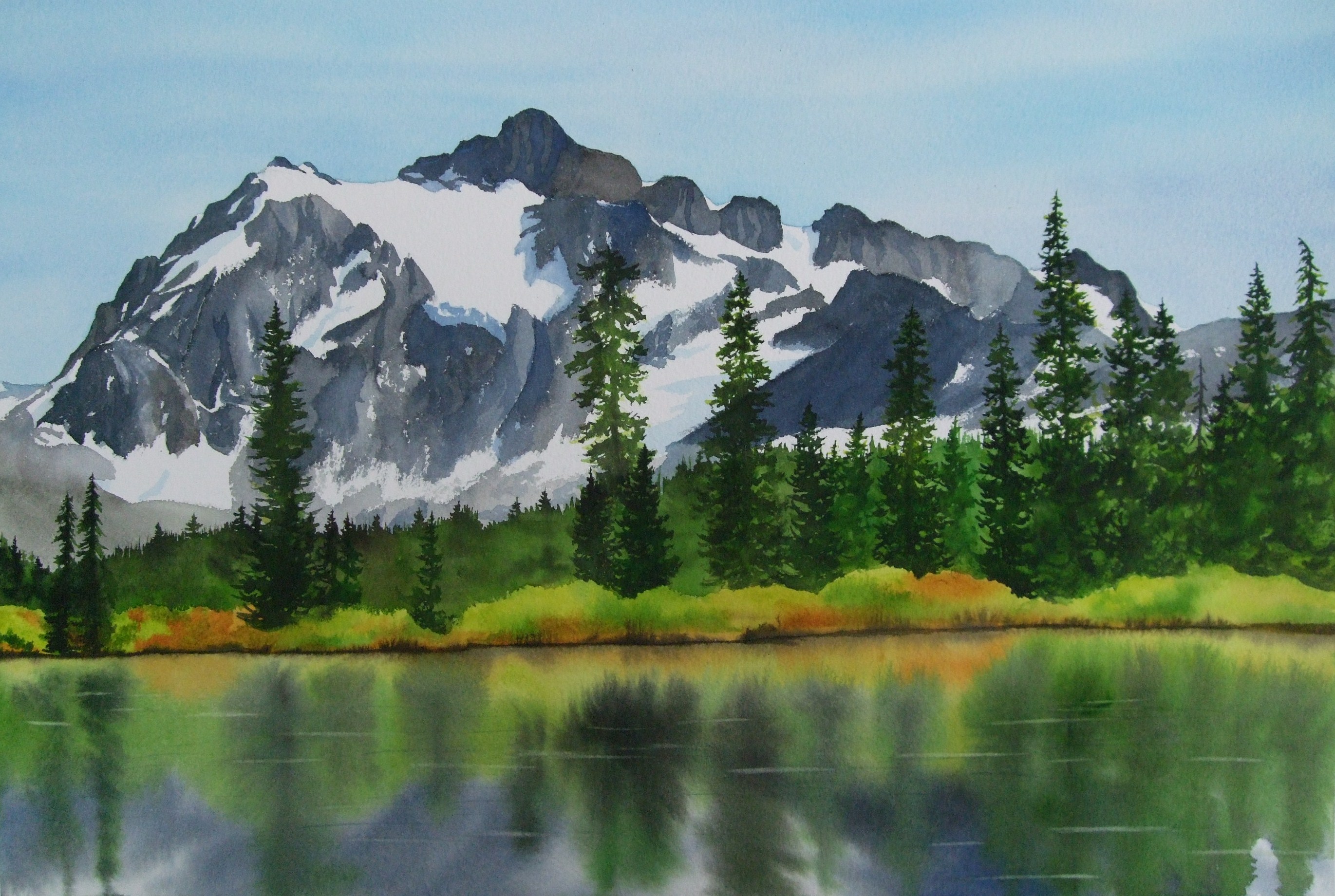- Mt Baker Reflection, Original Watercolour Painting, 55cm x 37cm