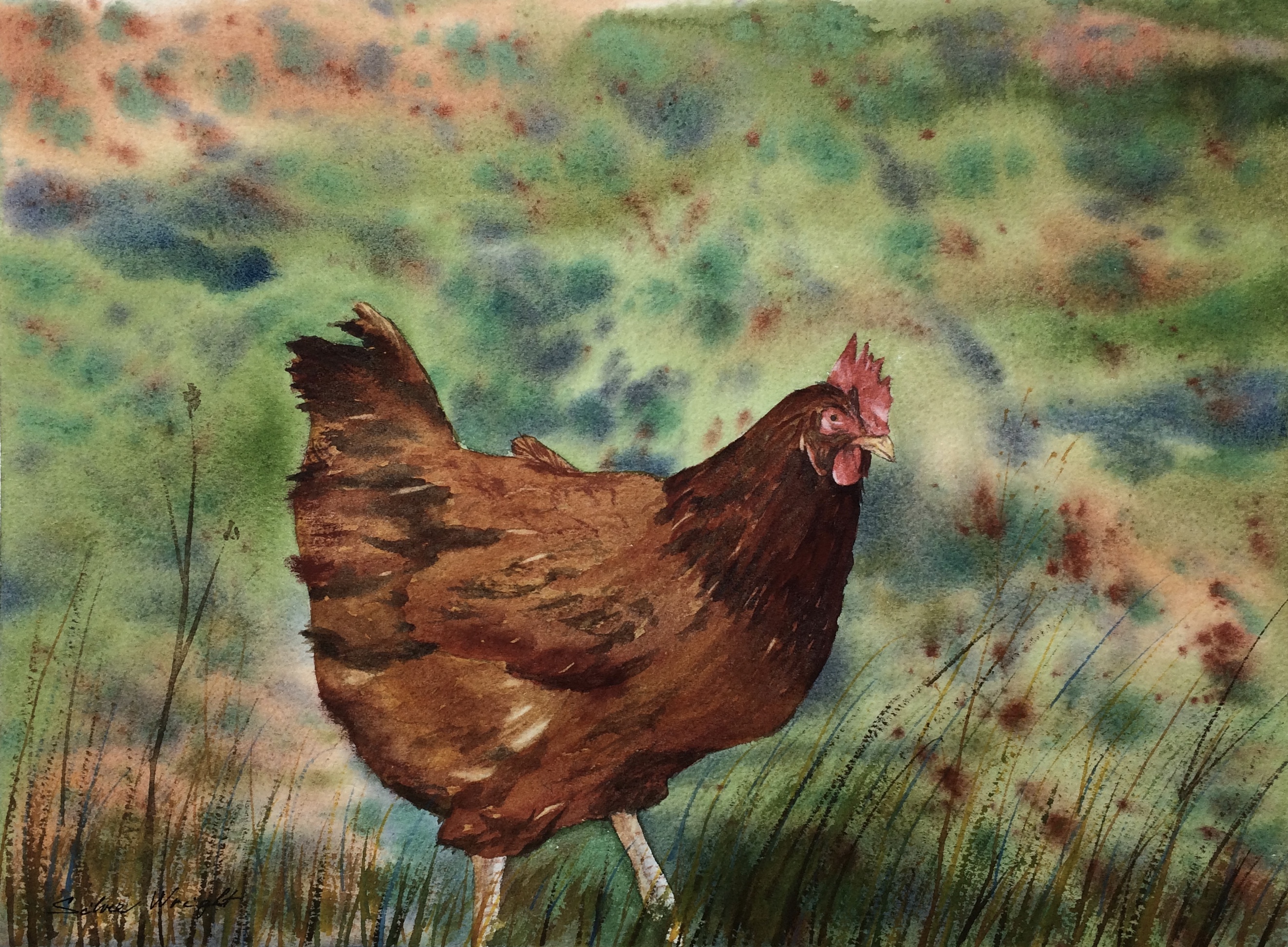 - ***SOLD*** Chicken thoughts, Original Watercolour painting, 36cm x 26cm