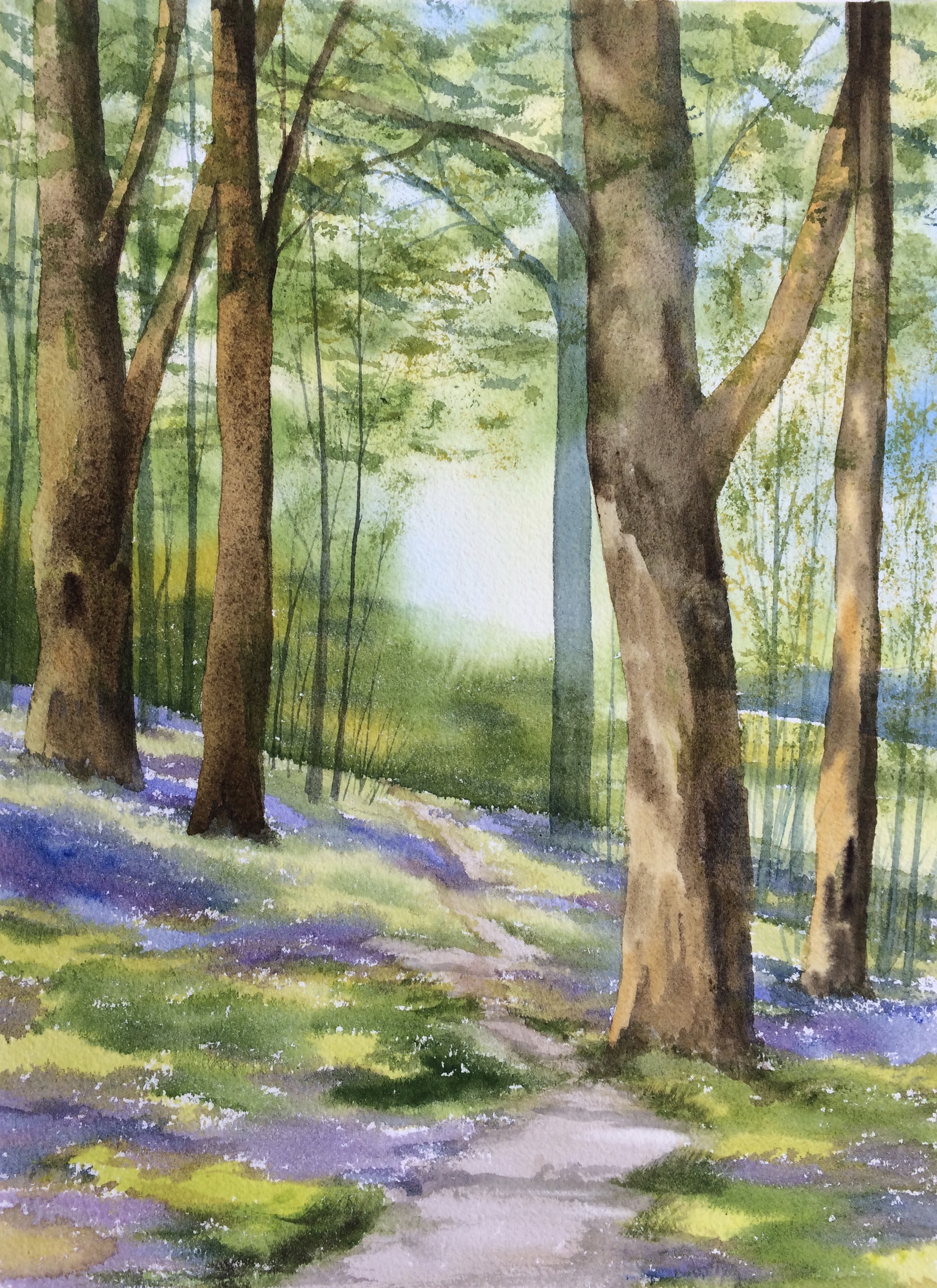 - Bluebell walk, original watercolour painting, 36cm x 26cm