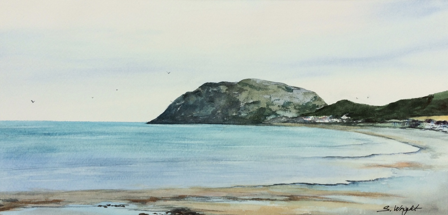 - Along Welsh coast, original watercolour painting, 55cm x 24cm