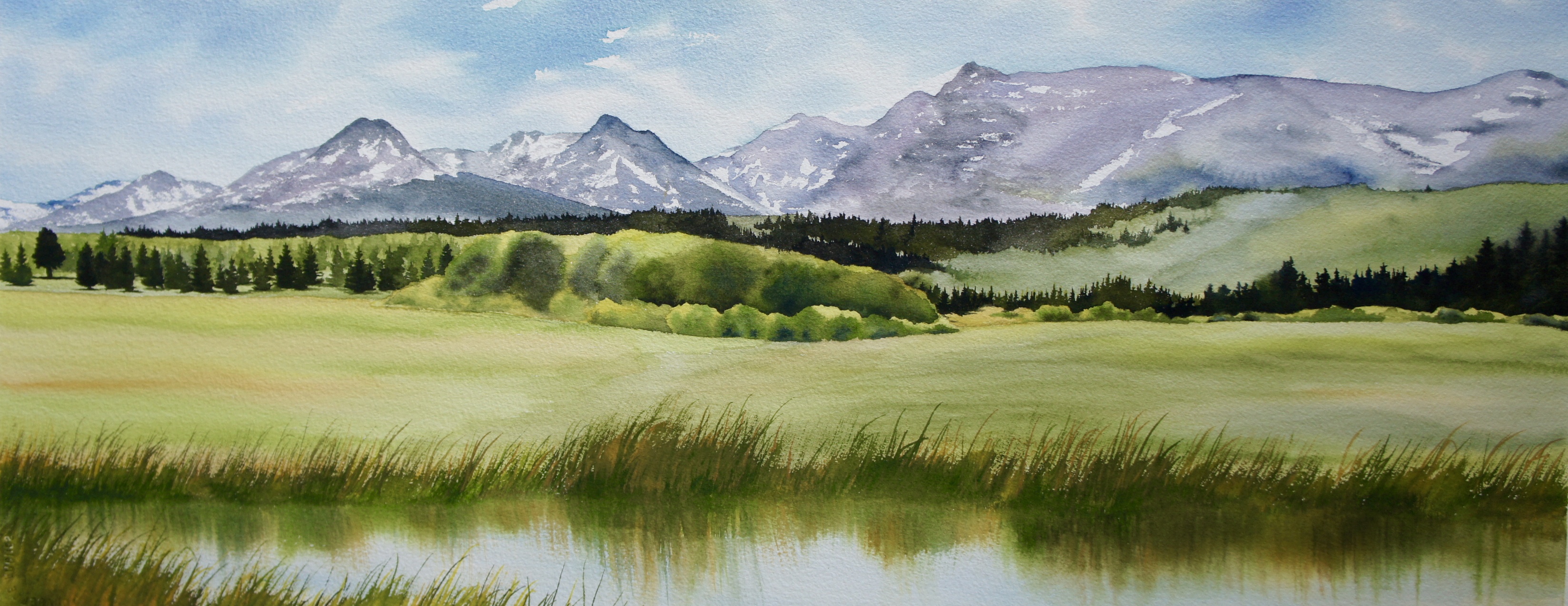 - Alpine Meadow, original watercolour painting, 75cm x 30cm