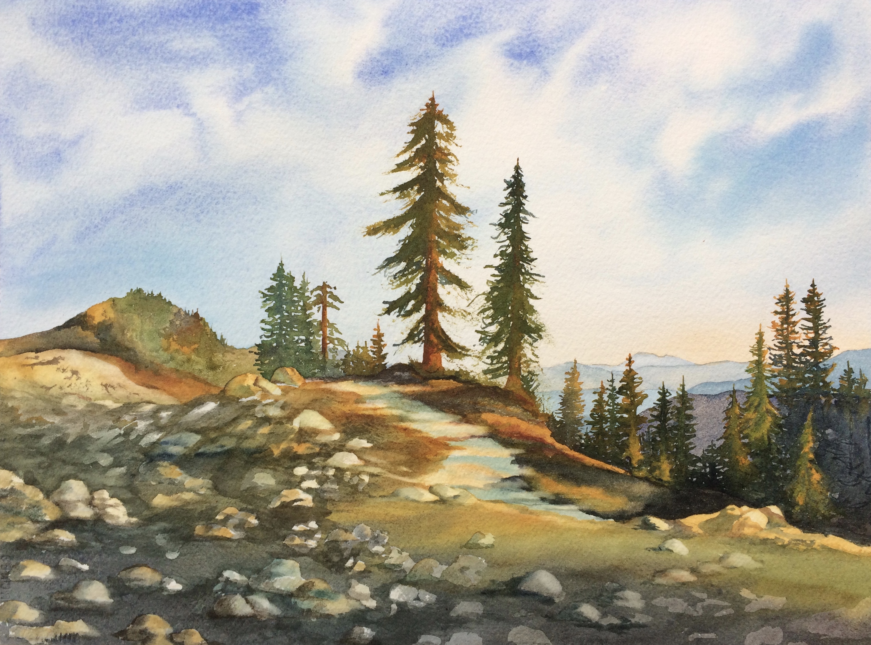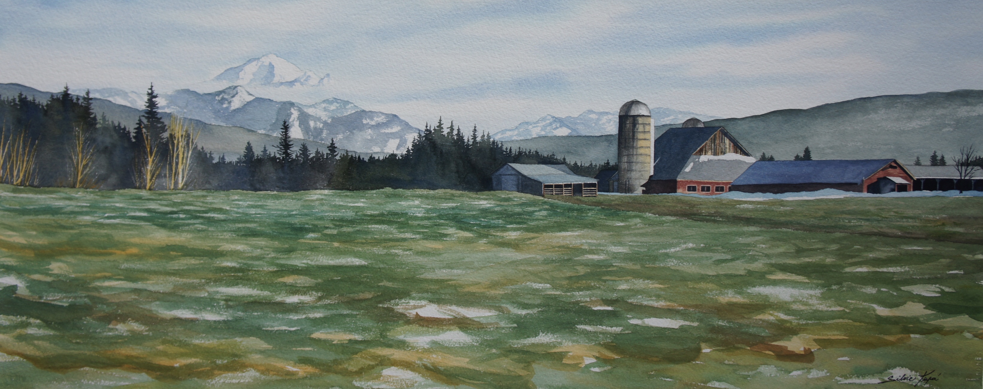 - Mt. Baker Farm (WA, USA), original watercolour painting, 75cm x 30cm