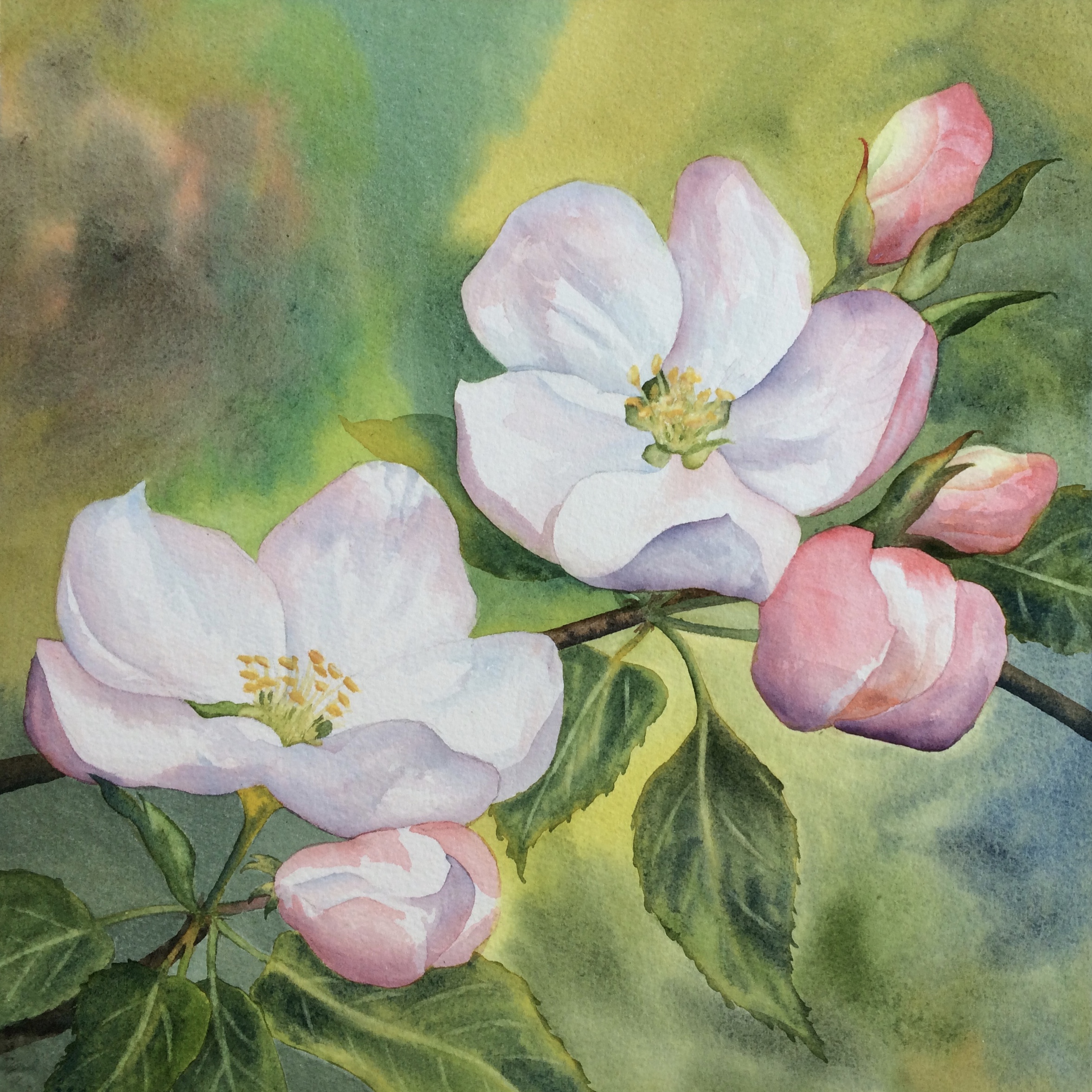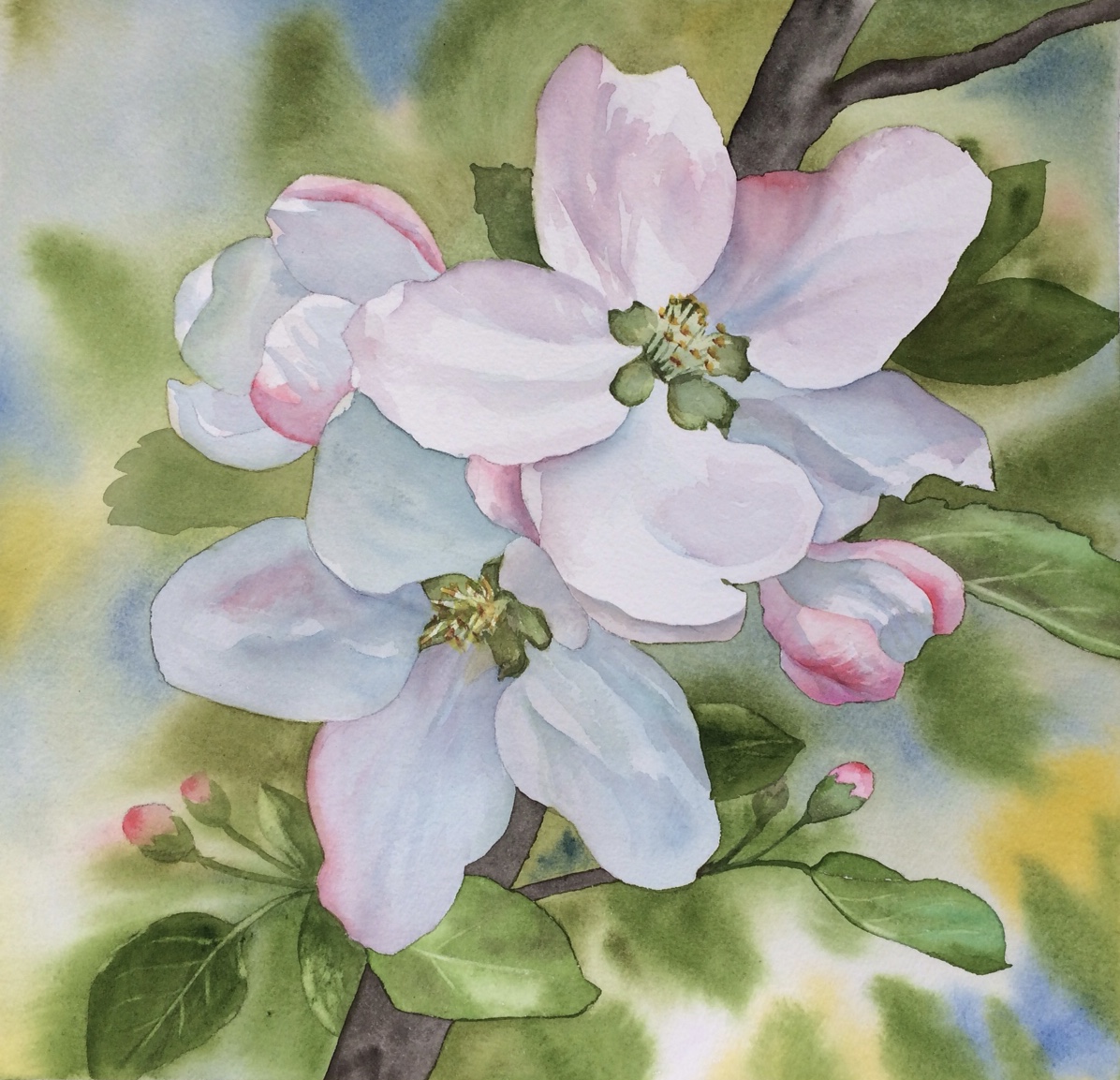 - ***SOLD***Apple Blossom, original watercolour painting, 36cm x 36cm