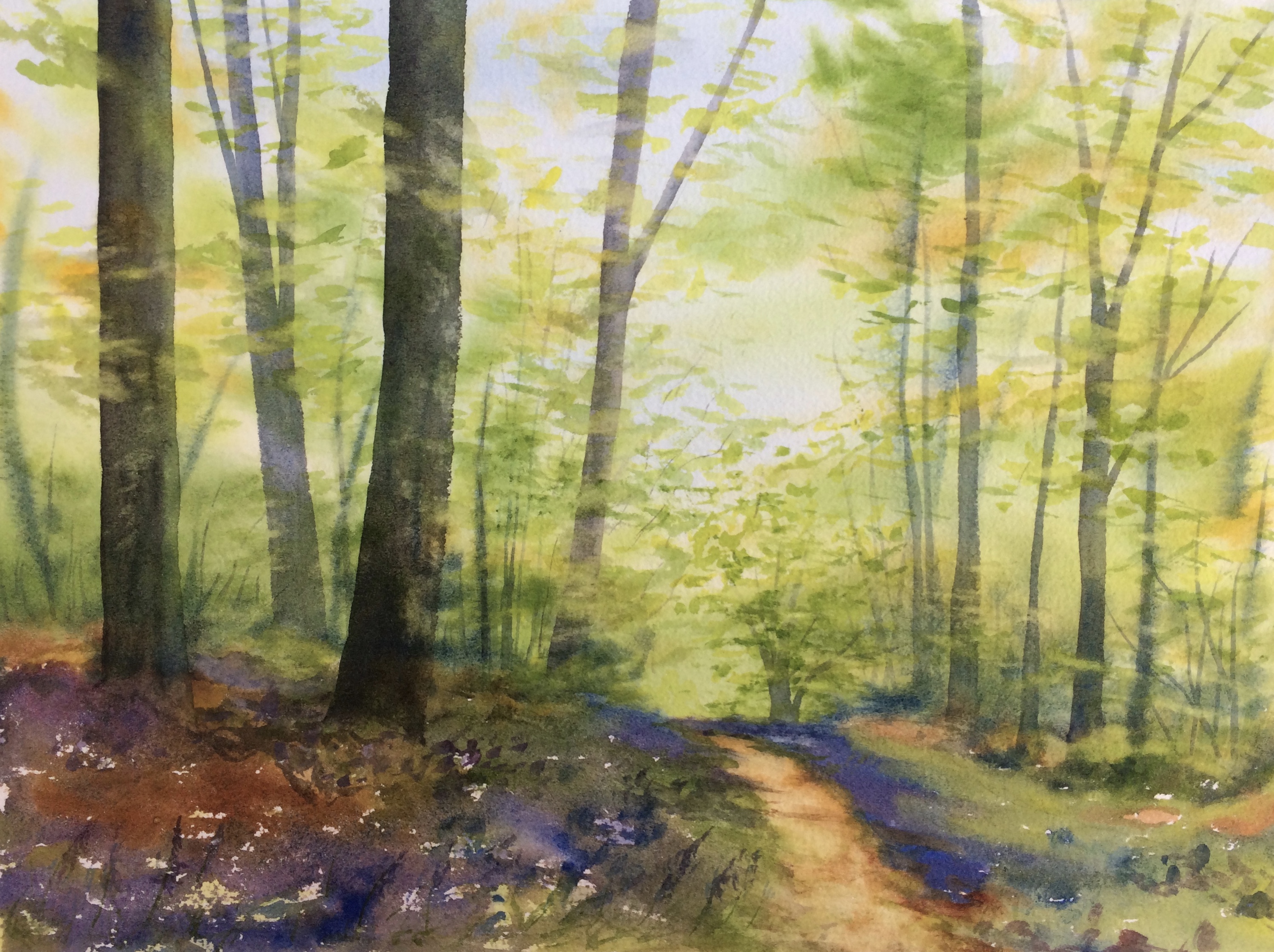 - ***SOLD***Forest Path, Original watercolour painting, 36 cm x 26 cm ***SOLD***