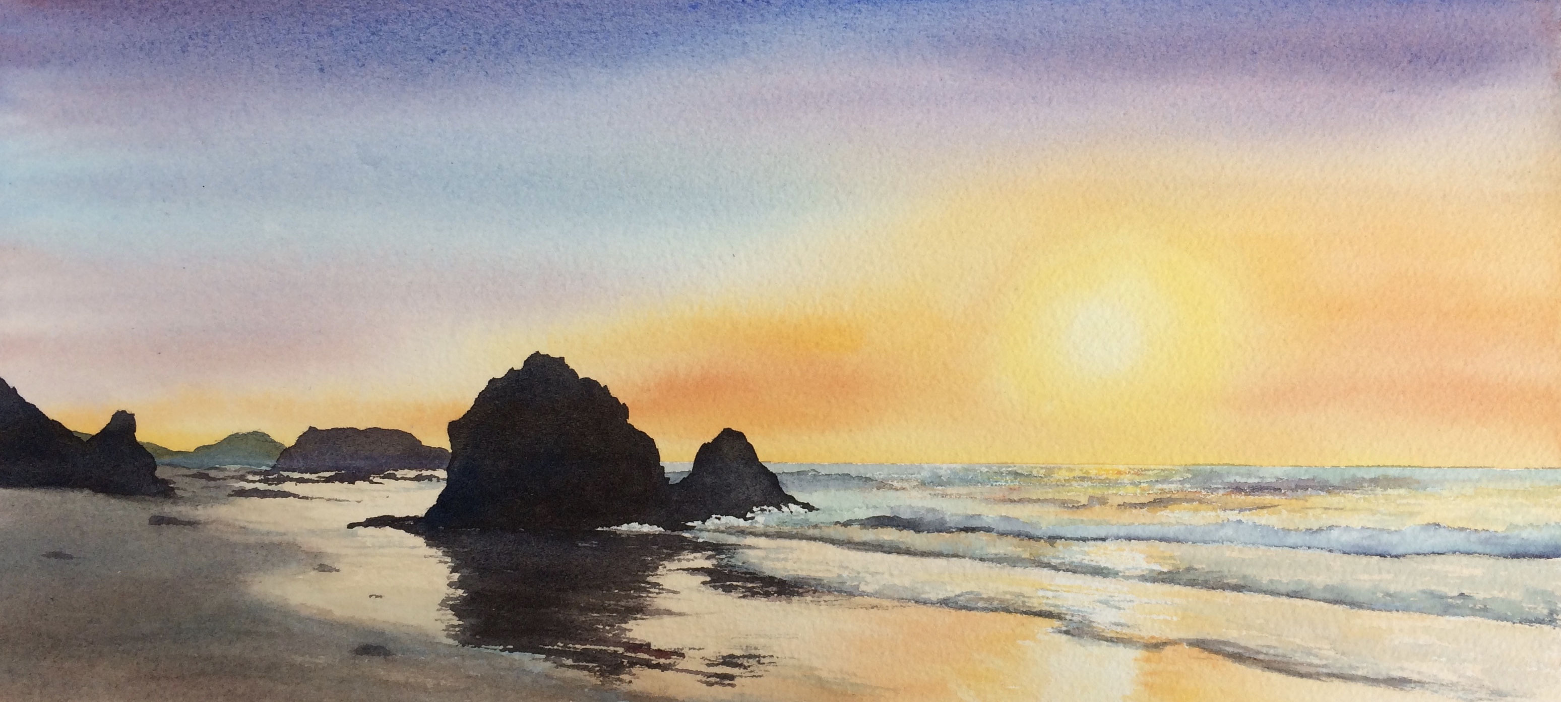 - Oregon coast, original watercolour painting, 55cm x 37cm
